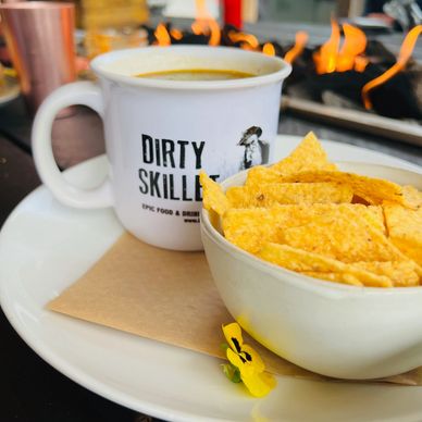 The Dirty Skillet has the tastiest food! Simple and hearty with a twist, there is something for everyone. They also have live music and outdoor seating on their covered porch with fire pit tables.